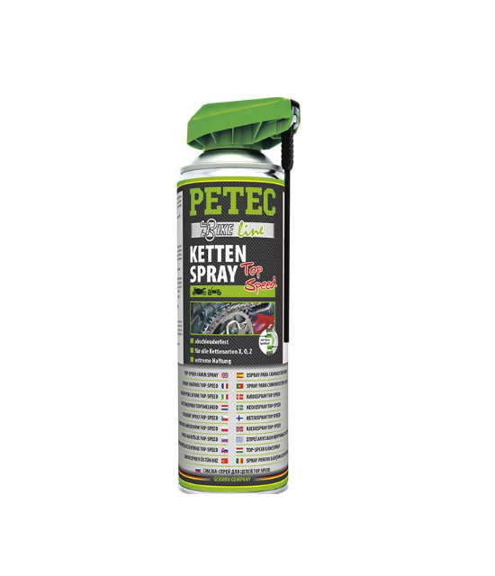 PETEC Sprej za lance je moderni sintetički sprej za podmazivanje i zaštitu visokoučinkovitih pogonskih lanaca, posebno onih izloženih velikim brzinama i teškim uvjetima rada.