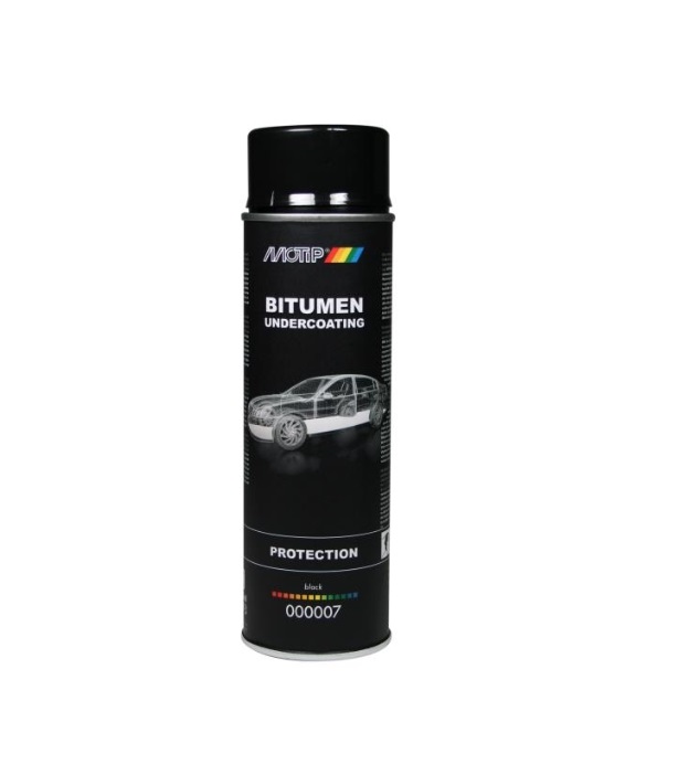 MOTIP Bitumen Undercoating sprej 500ml (Šifra: 000007) je zaštitni premaz na bazi bitumena namijenjen za dugotrajnu zaštitu podvozja vozila.