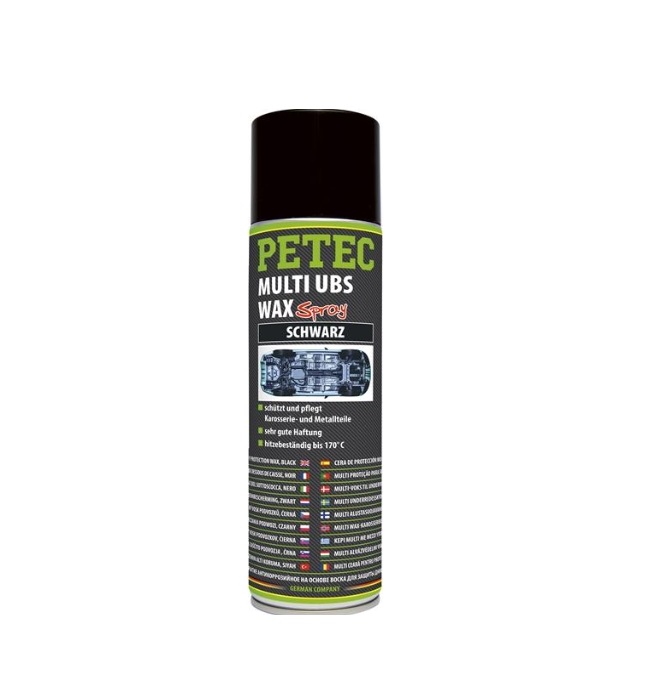 PETEC 73460 je vosak za zaštitu podvozja i karoserije (Multi UBS-WAX) u obliku spreja (aerosol) koji pruža dugotrajnu zaštitu od korozije i kamenčića.