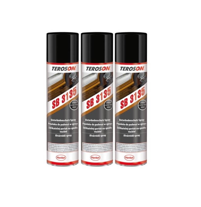 TEROSON SB 3135 (400 ml, 3 komada) je crni premaz za zaštitu podvozja vozila u spreju (aerosolu), bez bitumena, na bazi gume i smole.